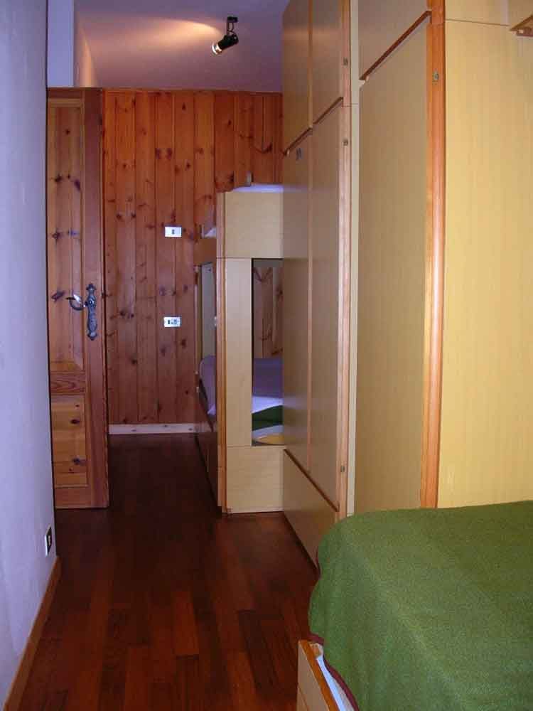 Appartamento al piano terra composto da: soggiorno, camera matrimoniale, camera con letto a castello + un letto singolo, cucinotto e bagno nuovo con doccia (non finestrati), spazi esterni privati. Box auto nel garage. In dotazione: piccola lavatrice e televisione. Pavimenti in legno nelle stanze, resto in ceramica. Riscaldamento ed acqua calda con teleriscaldamento. Disponibile per affittanze mensil, stagionali in inverno ed estate.ANIMALI NON AMMESSI