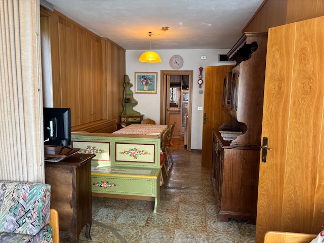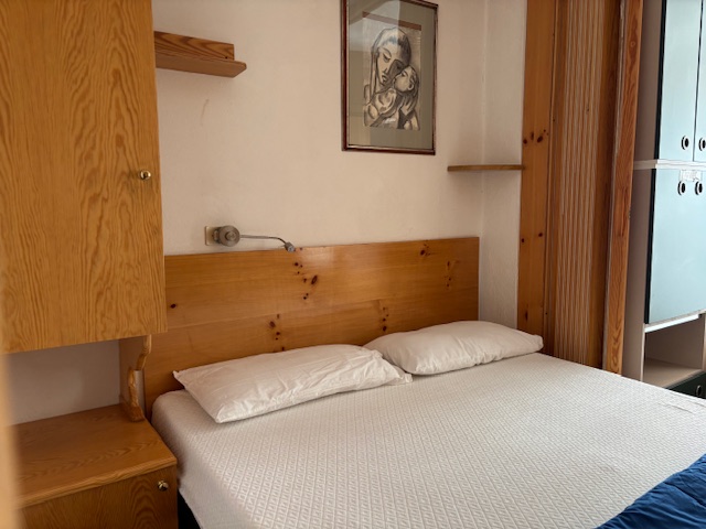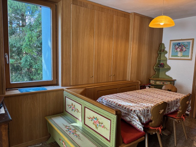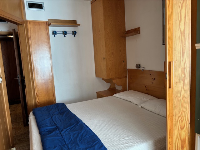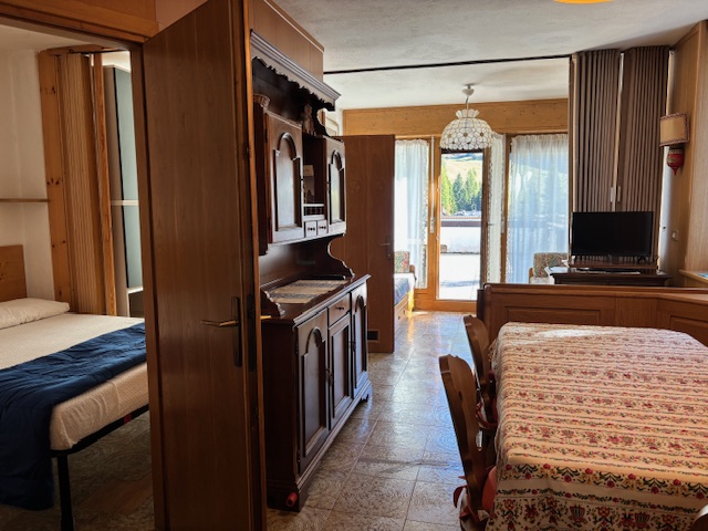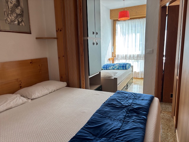 Ampio bilocale al 5° piano (un piano sotto il livello stradale) con ingresso indipendente, composto da una camera matrimoniale + 1 letto singolo, (separabili fra di loro da un soffietto scorrevole),soggiorno con due posti letto, separabili dalla zona pranzo (con "soffietto" scorrevole), cucinotto e bagno (lavatrice) con finestra, grandissimo terrazzo con vista Pale, ripostiglio, posto macchina nel garage. Pavimenti in ceramica. Acqua calda centralizzata. Disponibile per affittanze quindicinali, mensili. Prezzi su richiesta in base al periodo. ANIMALI NON AMMESSI. Fermata ski-bus antistante al Condominio.